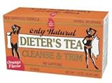 Product DescriptionDieter’s Tea, Cleanse & Trim, Orange contains a blend of eleven natural herbs to help eliminate water retention and excessive fats, which may facilitate weight reduction. . . . More >>